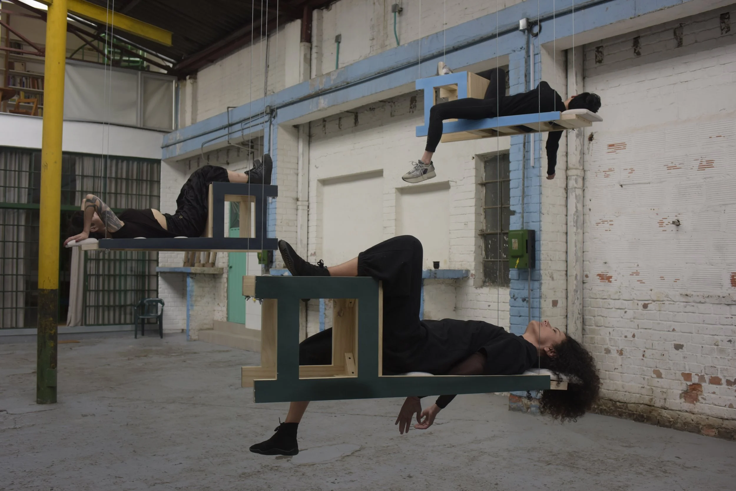 For the first time, Silla will be performed simultaneously by multiple performers. Six suspended chairs will serve as the central element of the activation, receiving actions from each performer, including the artist herself. The intersection of breath and movement provides an entry point into the political and spatial inquiries of the piece, considering how even the smallest gestures can generate new choreographic and conceptual territories.